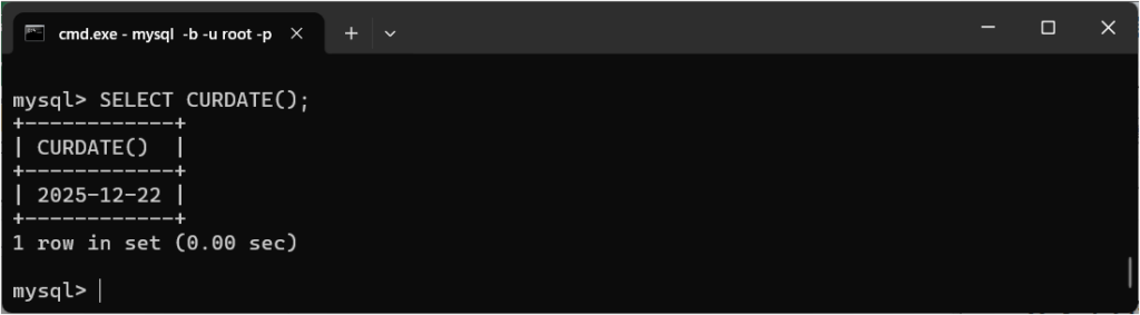現在の日付を取得する関数です。この関数は、引数をとりません。下記のように記述すると、現在の日付を取得できます。